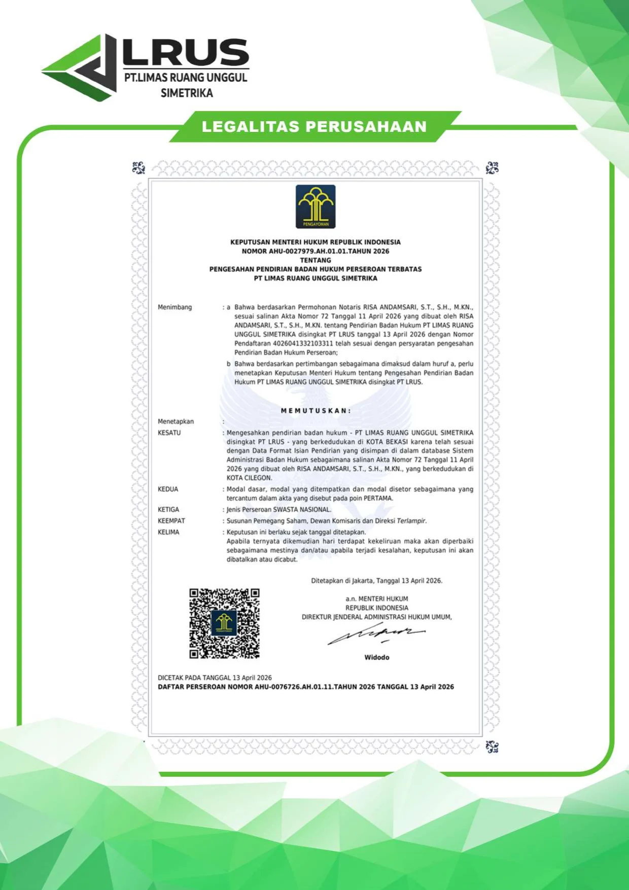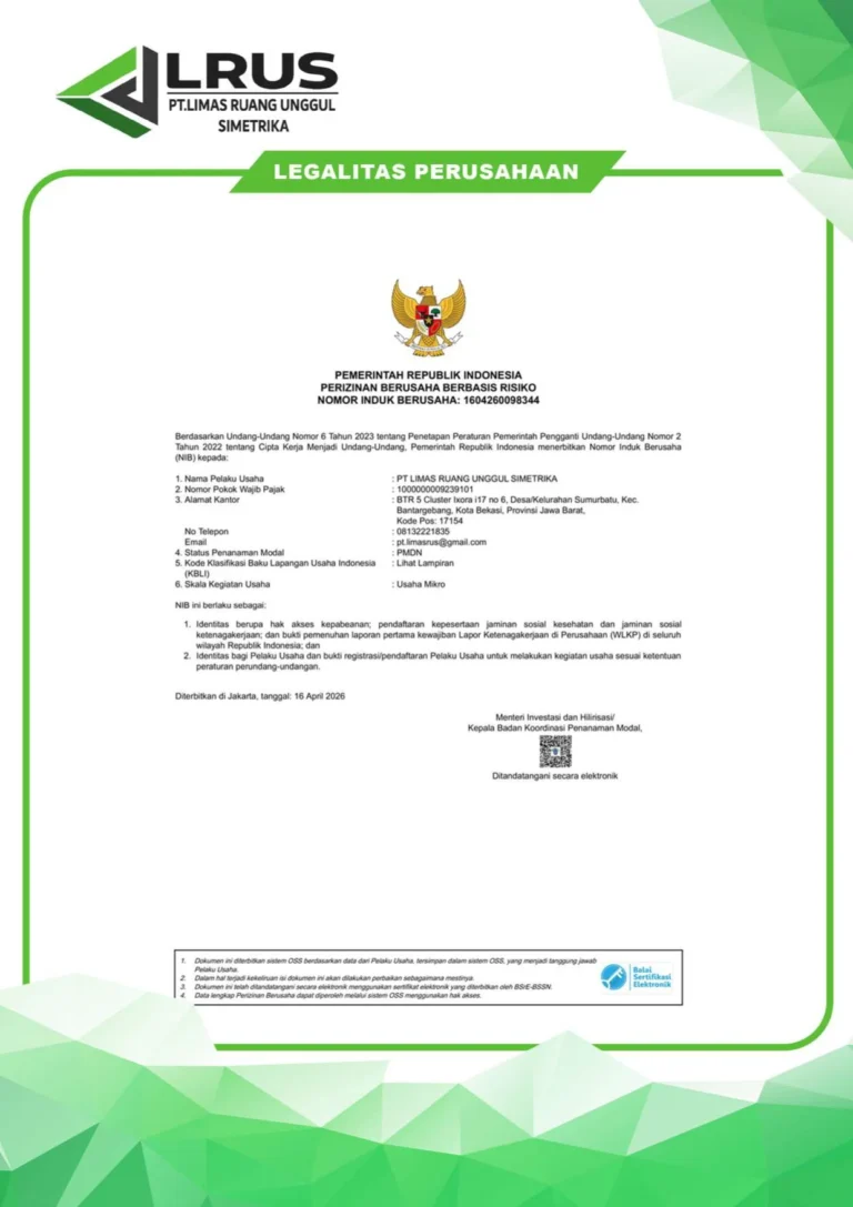 Dokumen resmi sebagai bukti legalitas dan kepercayaan layanan kami.Kami berkomitmen memberikan layanan konstruksi yang profesional dan terpercaya. Berikut adalah dokumen legalitas perusahaan yang menunjukkan bahwa kami telah terdaftar secara resmi dan menjalankan usaha sesuai dengan ketentuan yang berlaku.