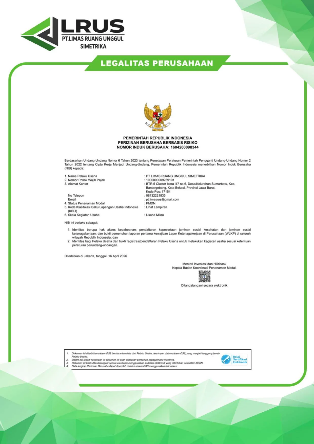 Legalitas dan Sertifikat Perusahaan
